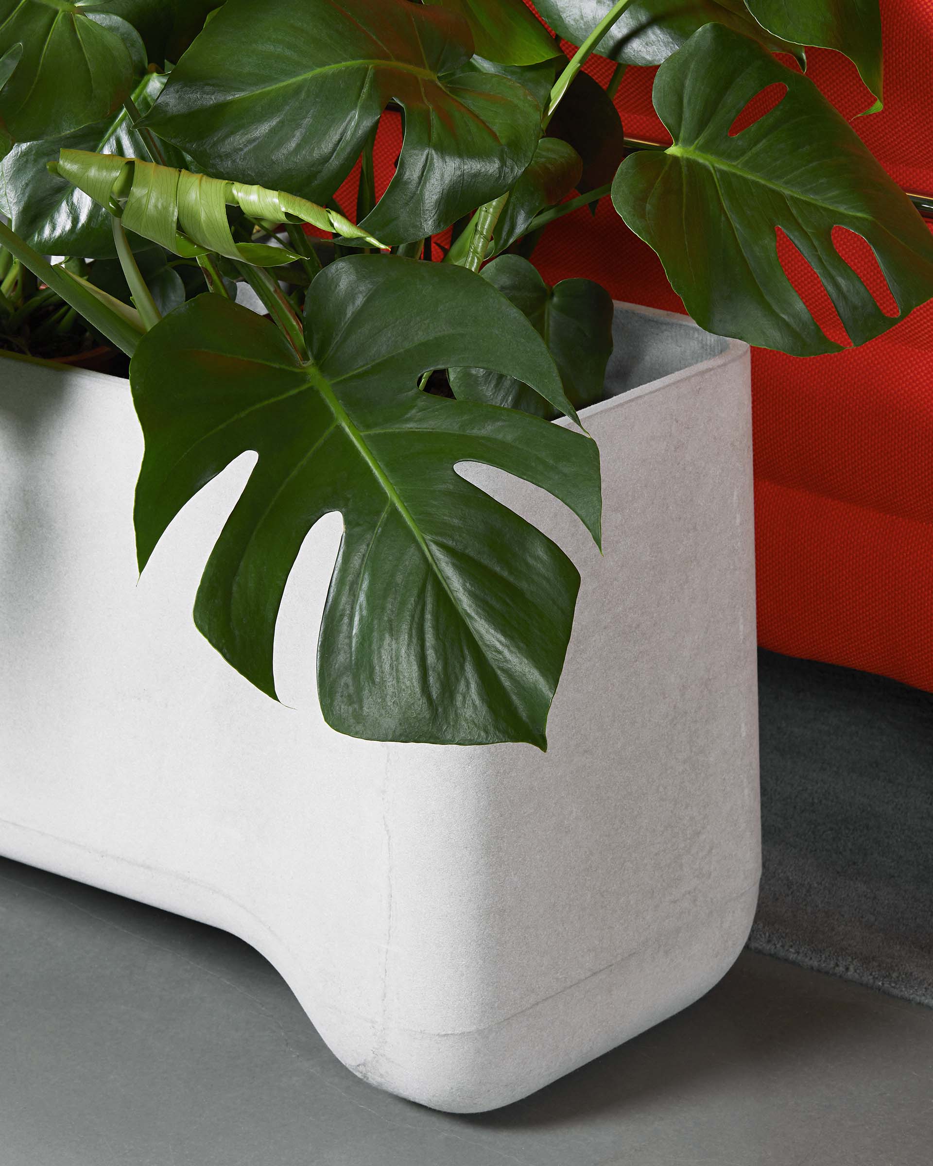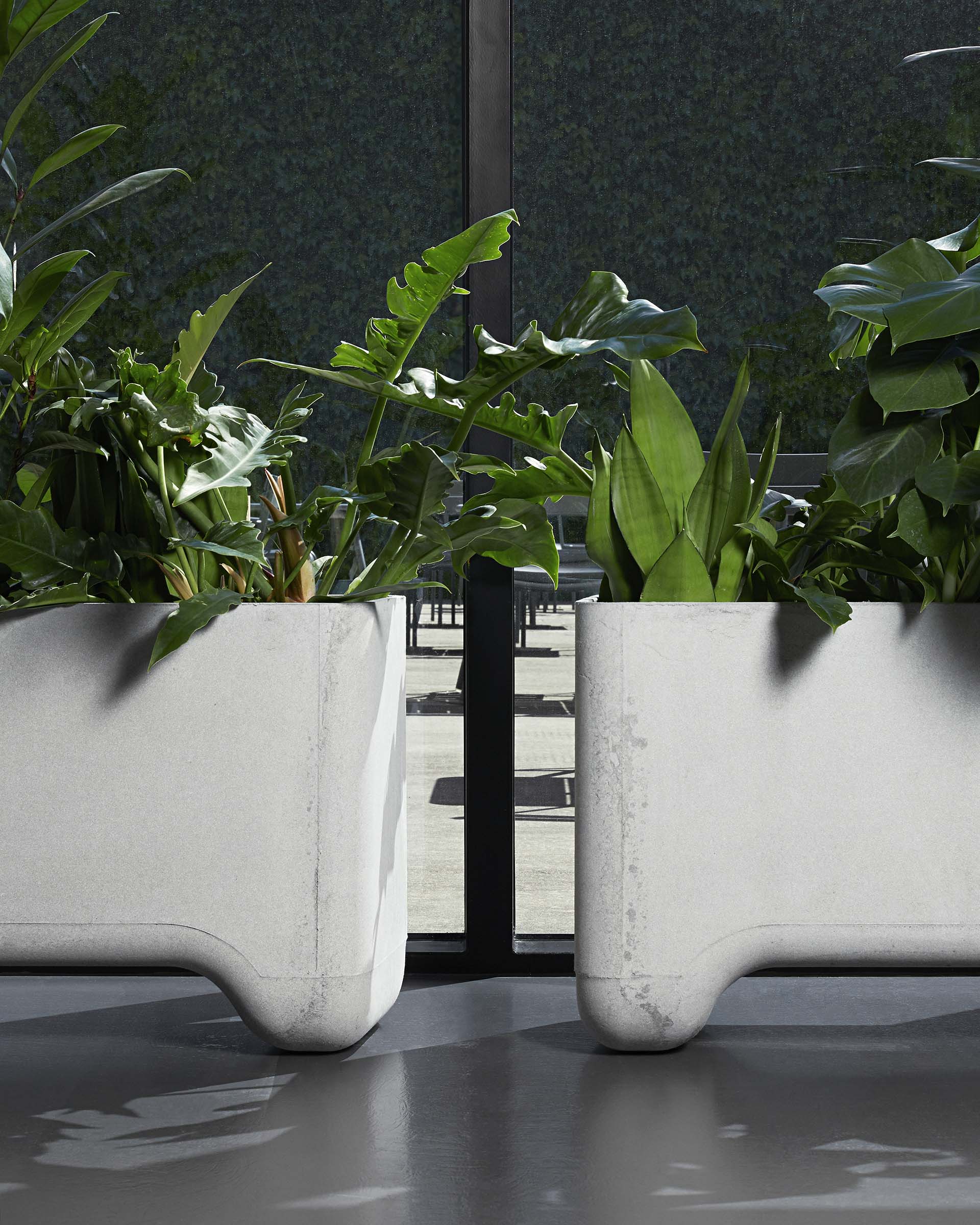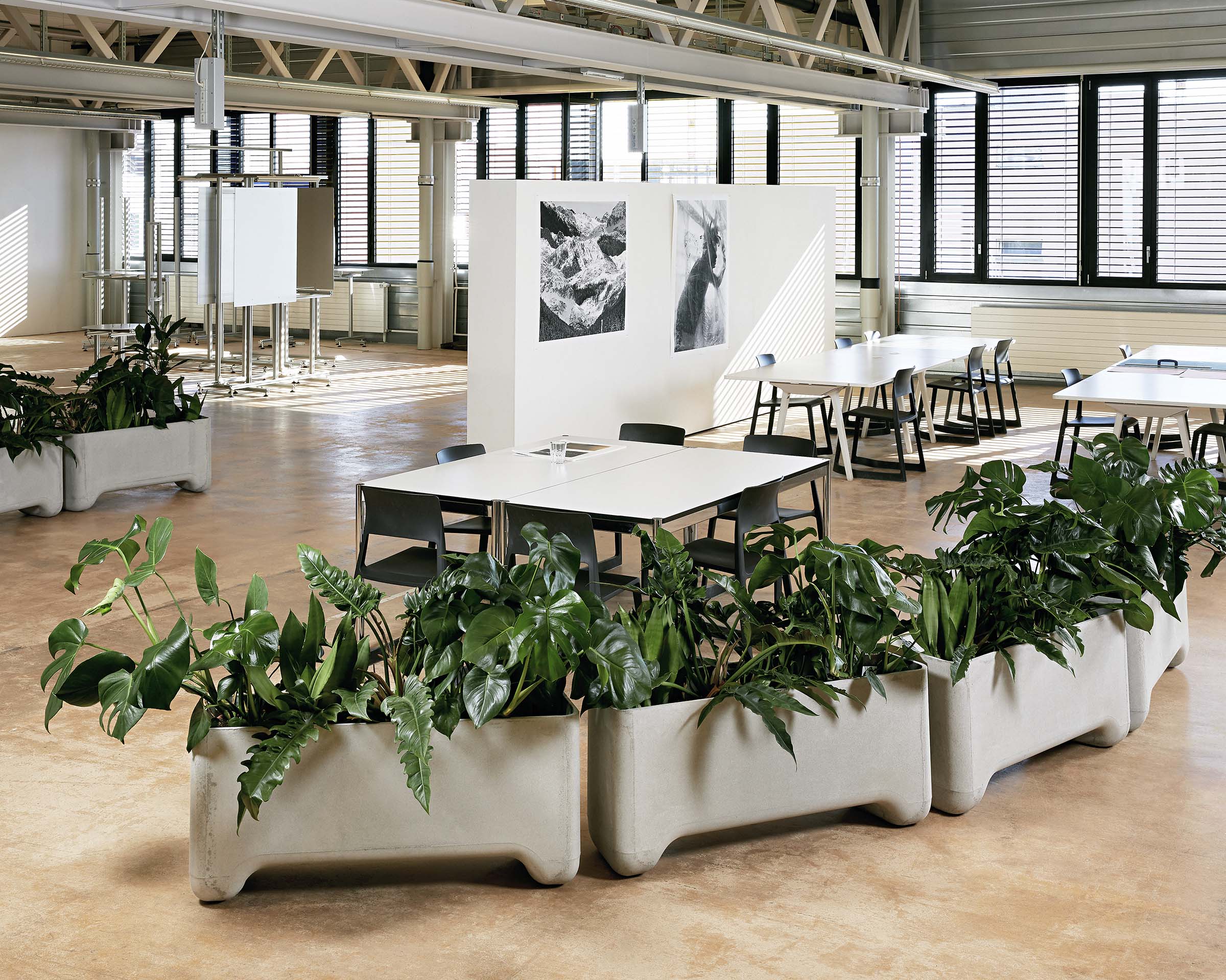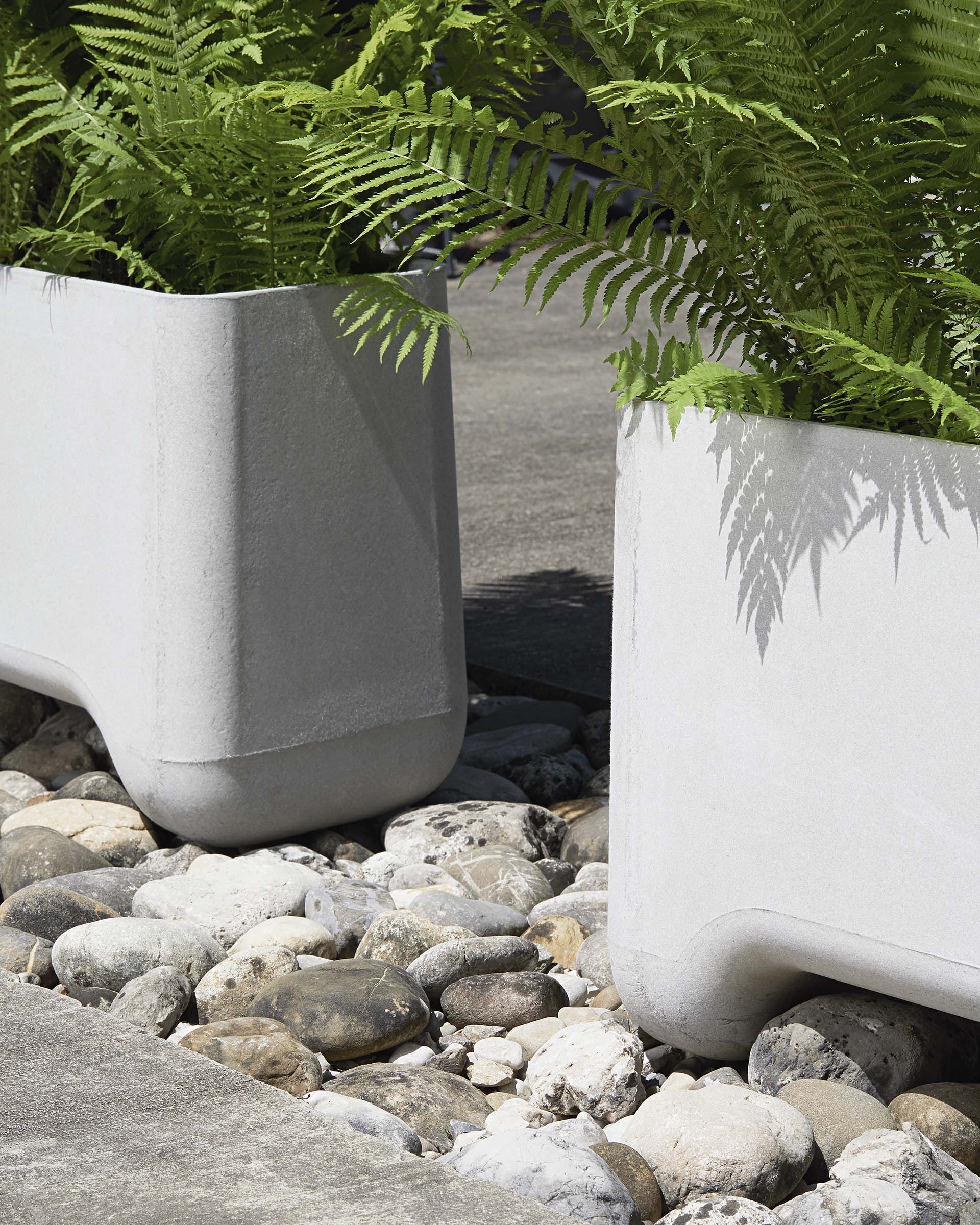 LIFT is a convenient plants pot compatible with most pallet jack and forklift, thus allowing it to be moved around and reorganised effortlessly. Its tapered sides make it possible to arrange them in a straight or curved line, or even to form a complete circle. Moulded from smooth and durable ETERNIT fibrocement sheets, LIFT is suitable for outdoor use, but it also enjoys living indoors.